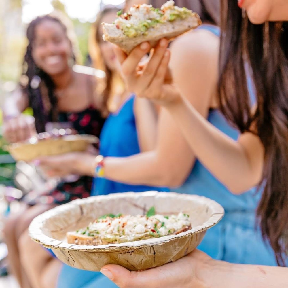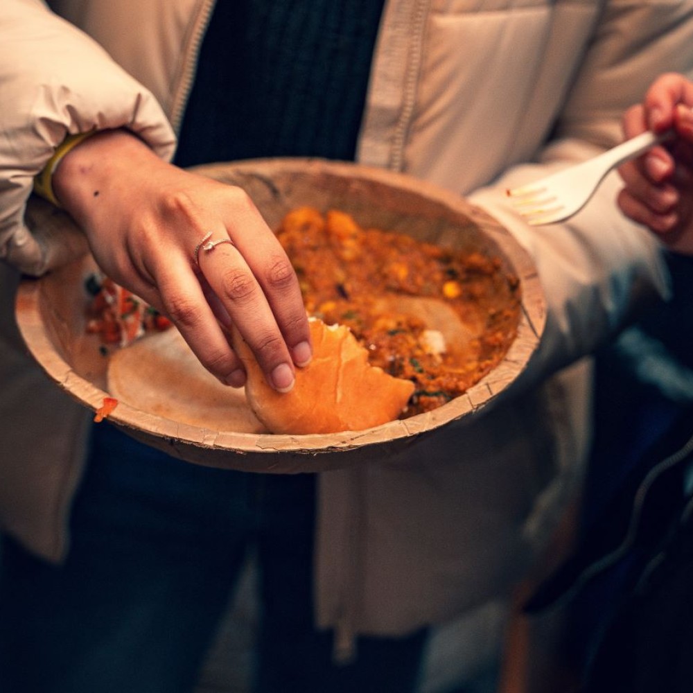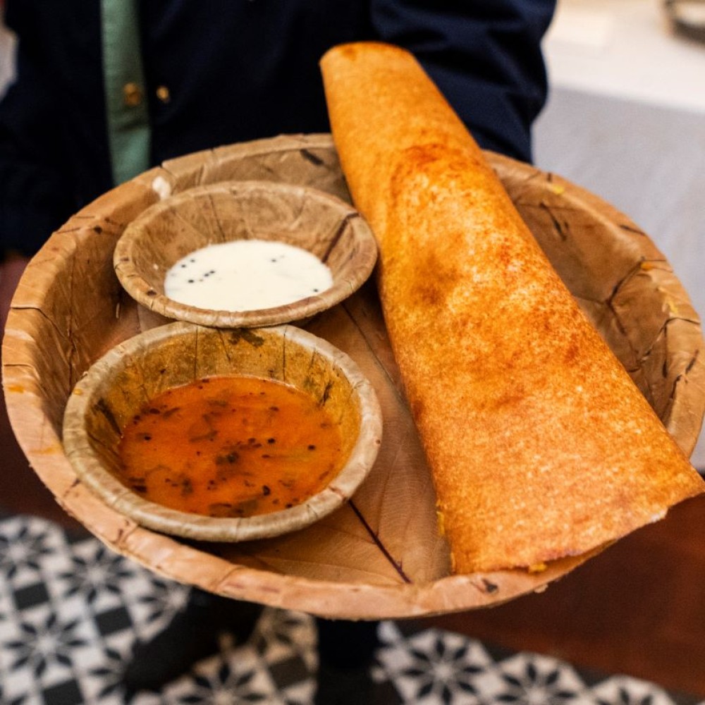 Skilled artisans collect and stitch Sal leaves together using natural bamboo stick. The plates are then heat-pressed and shaped without using synthetic materials.